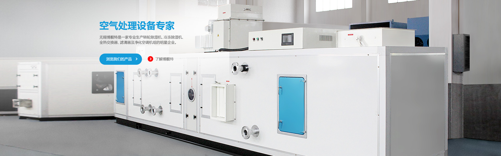 無錫博靚特空氣處理設(shè)備有限公司是一家專業(yè)生產(chǎn)轉(zhuǎn)輪除濕機(jī)、冷凍除濕機(jī)、恒溫恒濕機(jī)、全熱交換器、新風(fēng)處理機(jī)及凈化空調(diào)機(jī)組的明星企業(yè)。 公司座落于中國(guó)長(zhǎng)三角的中心城市——江蘇省無錫市。公司背鄰太湖,旁倚錫宜高速和…